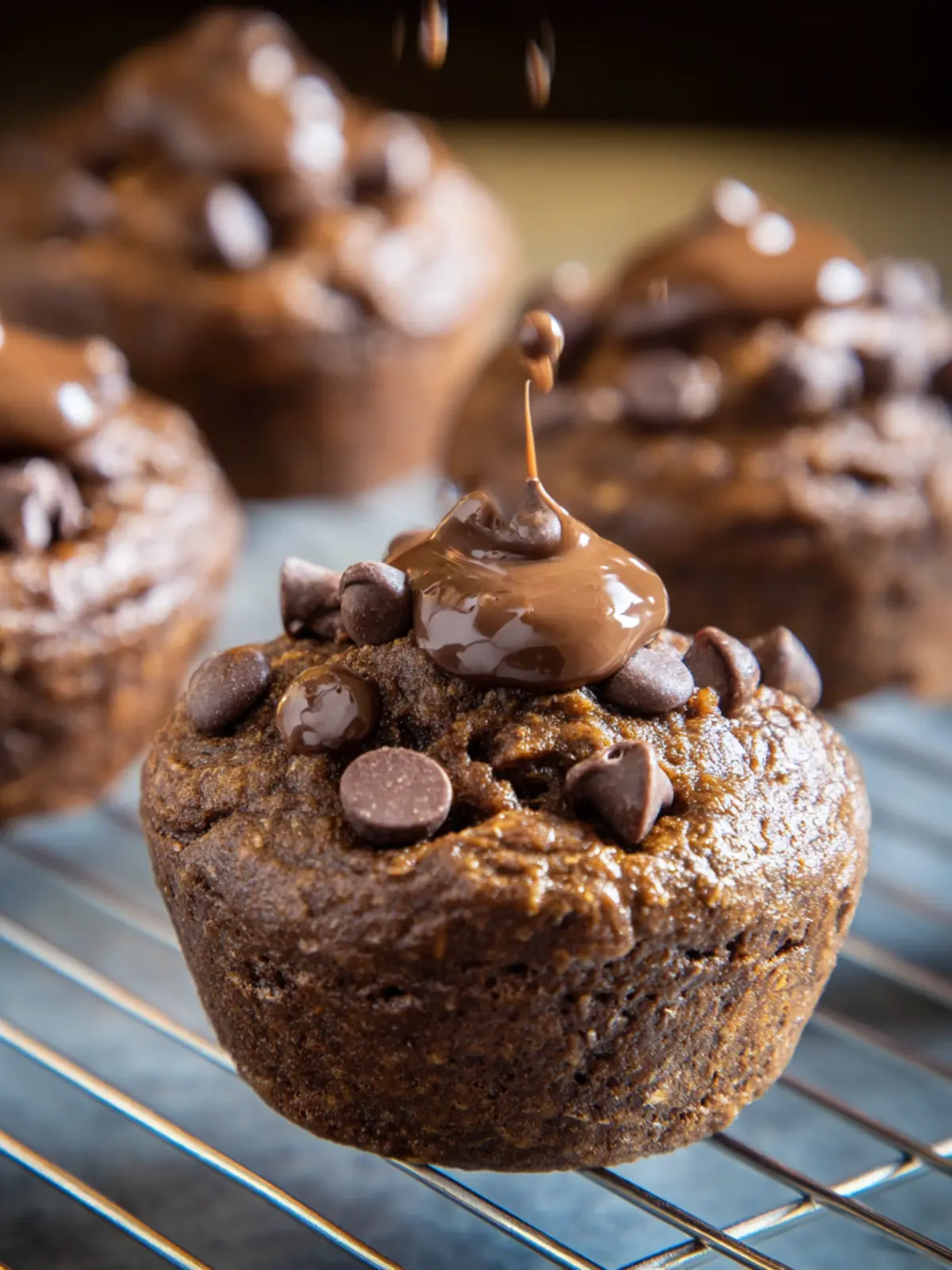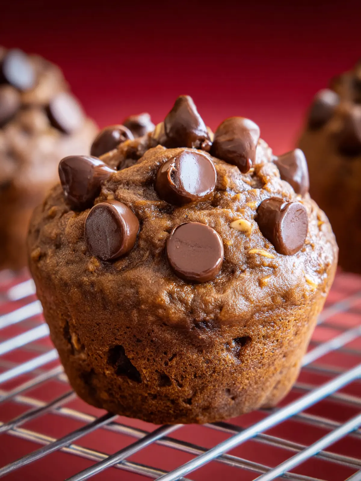 Delicious chocolate banana muffins made with ripe bananas and creamy peanut butter.