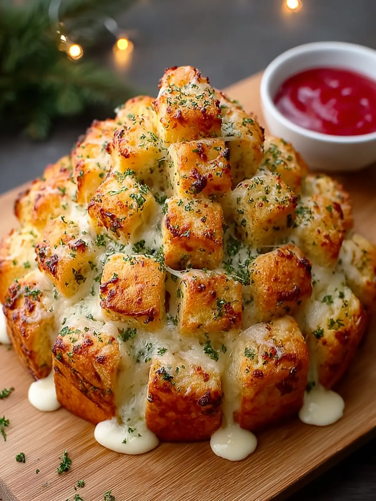 - Accompaniments: Serve your Christmas Tree Pull-Apart Bread with a warm dipping sauce. Try something tangy like a balsamic reduction or sweet such as chocolate sauce for a delightful contrast.