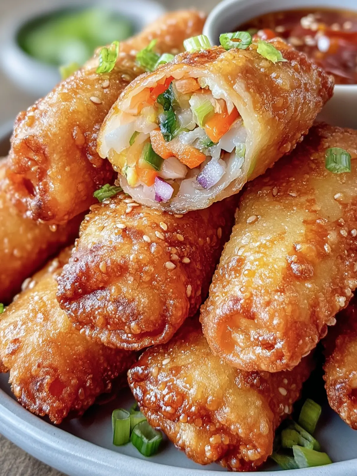 Deliciously crispy vegetable spring rolls filled with fresh vegetables and served with dipping sauce.