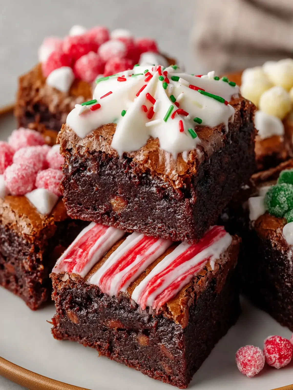 Consider adding a festive twist by drizzling your brownies with melted peppermint bark or white chocolate frosting. A sprinkle of crushed candy canes on top not only adds a pop of color but also gives a delightful crunch that pairs perfectly with the fudgy texture.