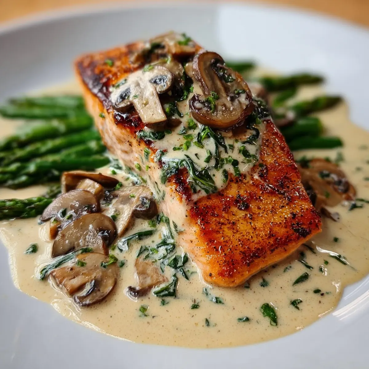 - Spoon the creamy mushroom sauce over the salmon.