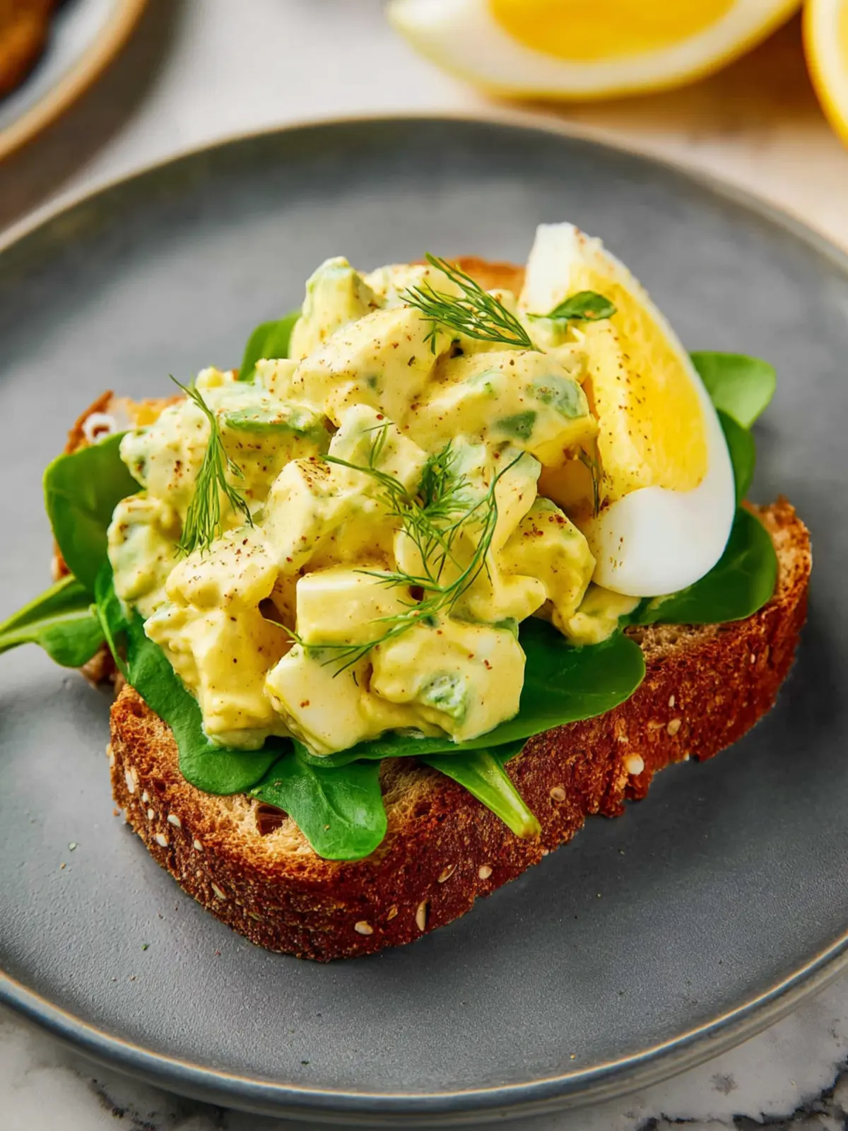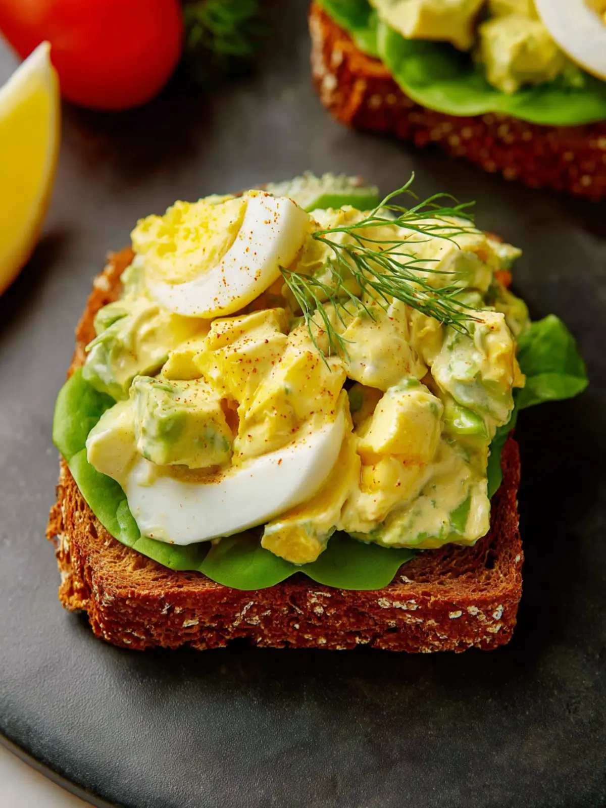 • Classic Sandwich: Spread the egg salad between slices of whole-grain bread for a hearty sandwich. Add leafy greens like spinach or arugula for a crunchy texture and extra nutrients.