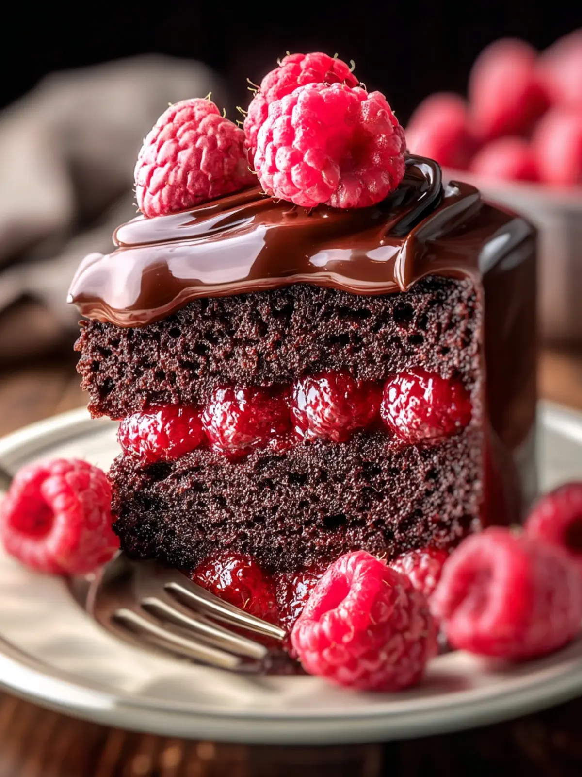 Fresh Raspberry Magic: Incorporating fresh raspberries brings a delightful acidity that complements the sweet richness of chocolate. Whether you use them in the batter or as a stunning topping, they infuse the cake with vibrant flavor and a pop of color.