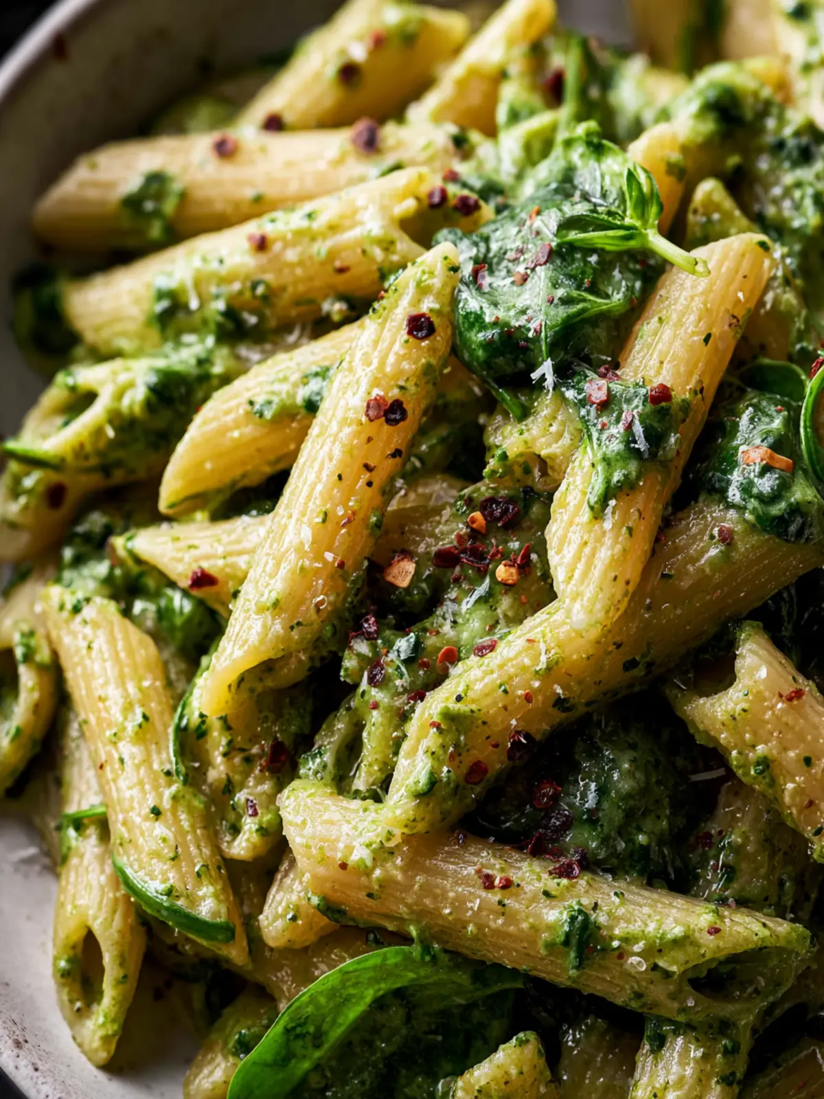 The magic lies in the combination of flavors and textures that come together beautifully in the irresistible creamy spinach pasta.