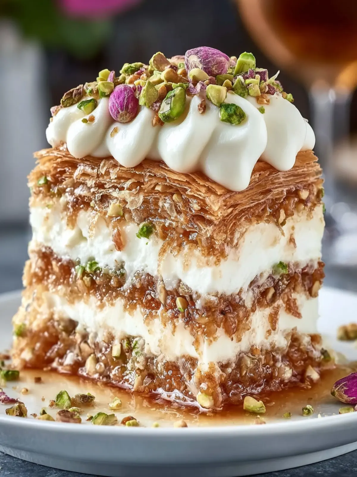 Indulging in a Layered Pistachio Baklava Cake is like taking a delightful journey through the rich traditions of Middle Eastern desserts. This cake brings together flaky layers of phyllo pastry, roasted pistachios, and a sweet syrup that creates an unforgettable treat that dances on your taste buds.