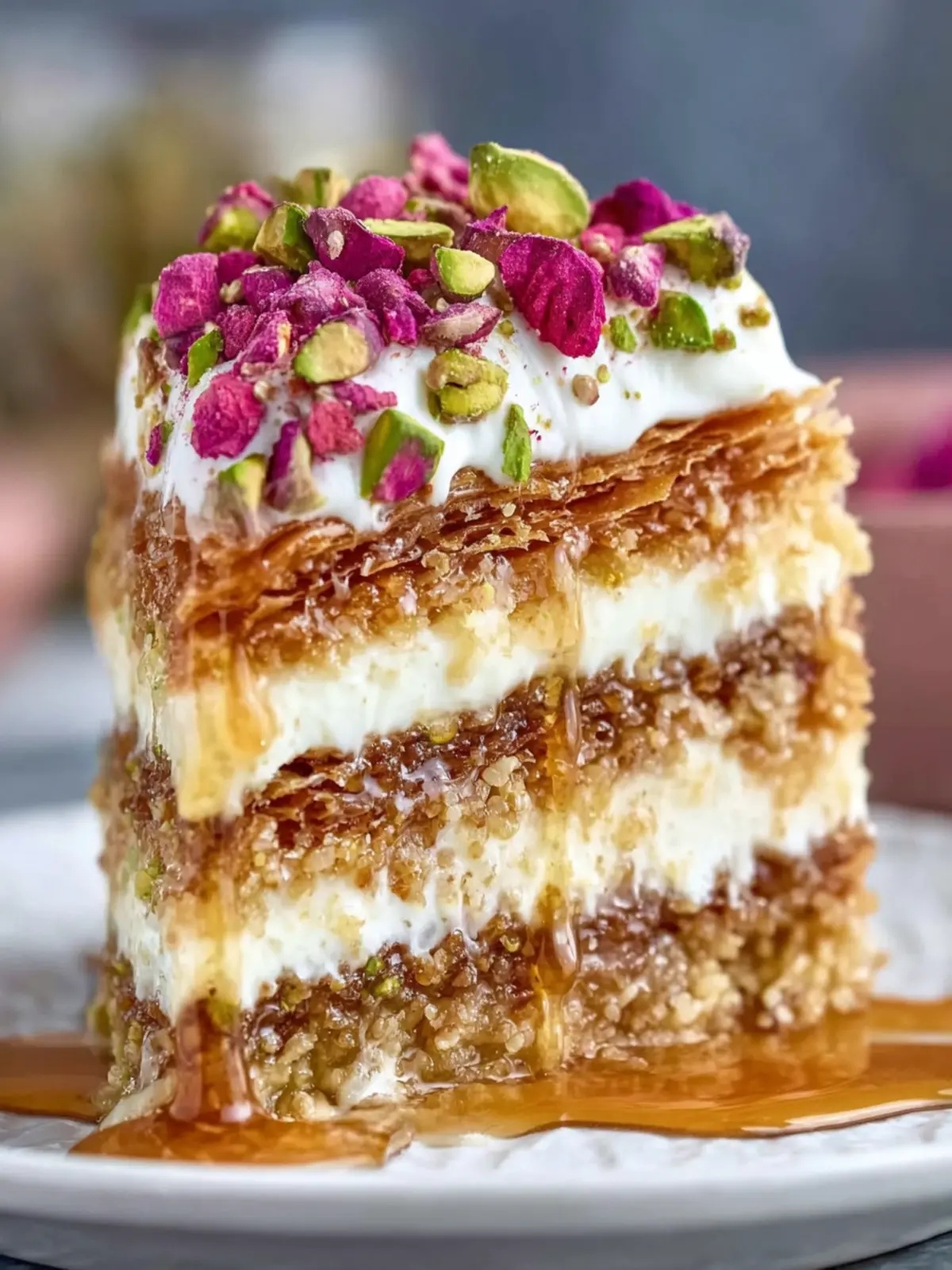 A few standout elements make the Layered Pistachio Baklava Cake truly one-of-a-kind:
