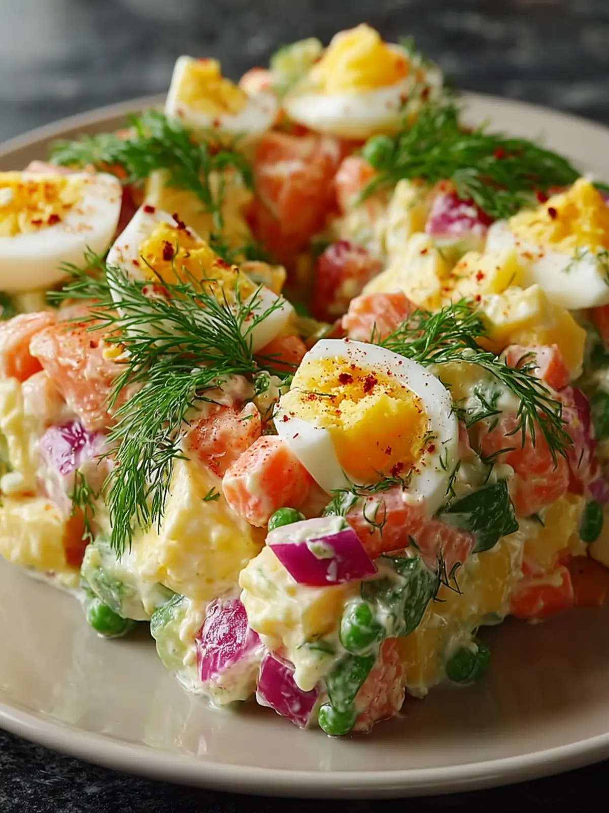 Whether it’s a holiday feast, a family gathering, or a casual dinner with friends, the Olivier Salad Wreath is versatile enough to fit seamlessly into any occasion, bringing warmth and joy to the table. Enjoy serving this delightful salad and watch your guests marvel at its festive charm!