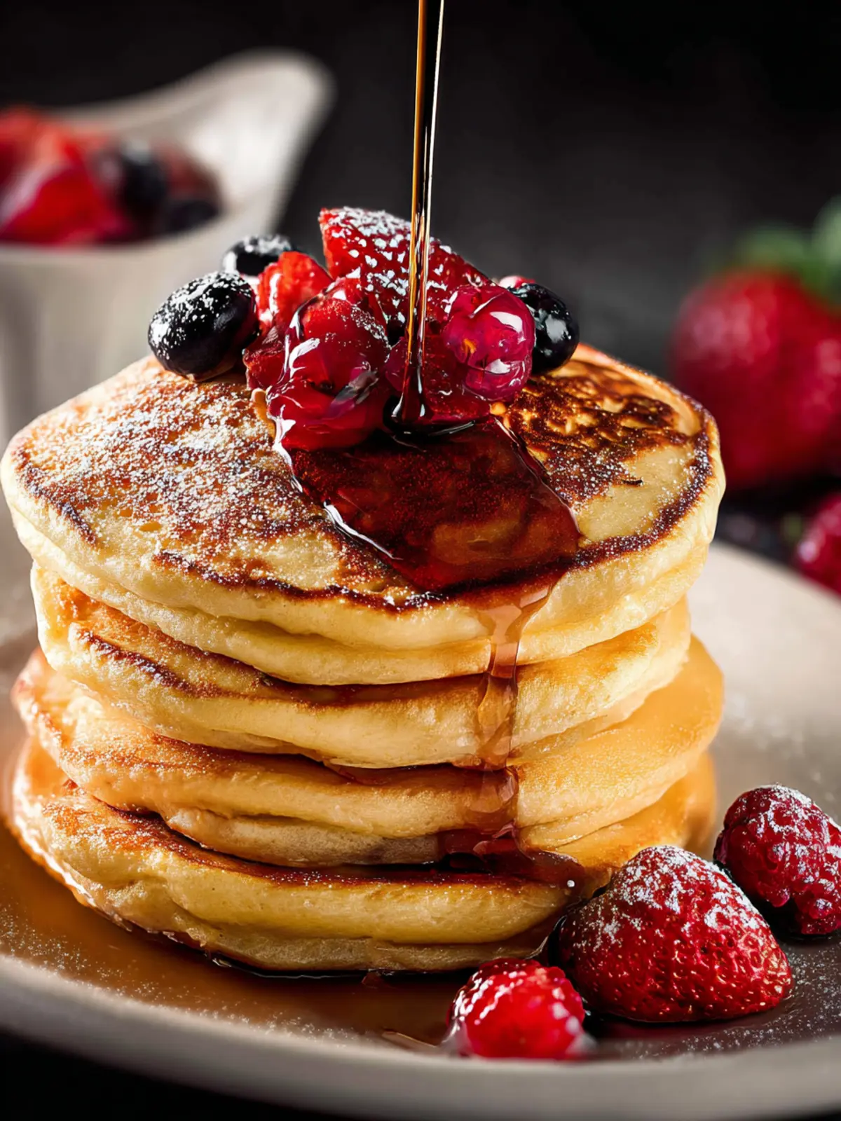 Drizzle warm maple syrup over your pancakes for the classic touch or experiment with honey or agave syrup for a lighter option. For something a bit more luxurious, consider a homemade berry compote to enhance the fruity notes.