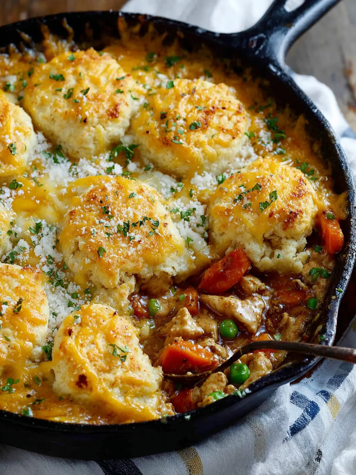Turkey: The star of the dish, diced turkey, adds protein and heartiness. Leftover roasted turkey works perfectly, giving the pot pie a deliciously savory depth.
