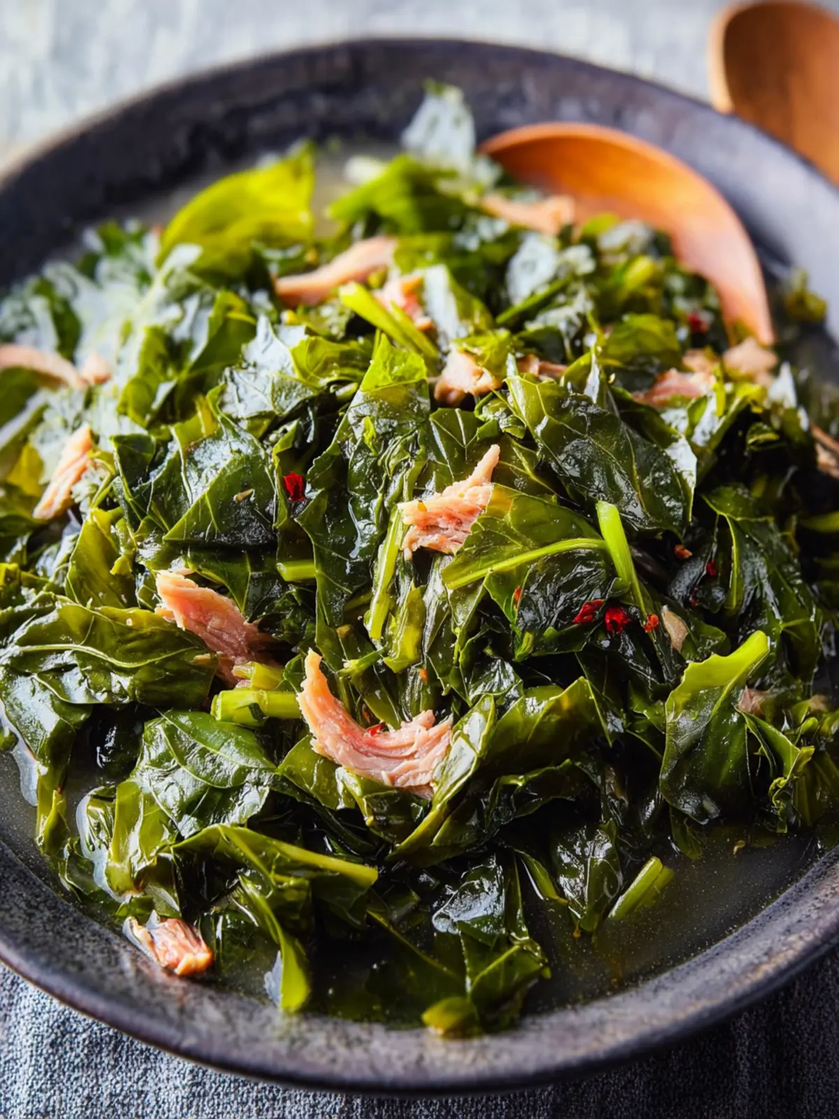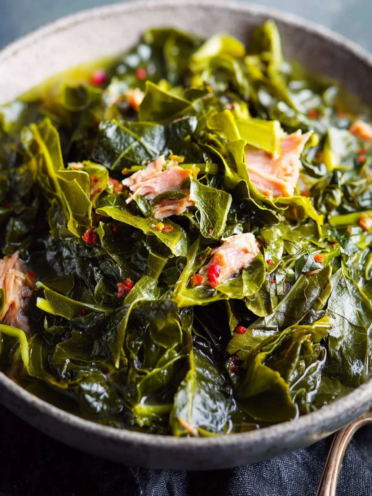 A hearty and flavorful dish featuring collard greens and smoked turkey.
