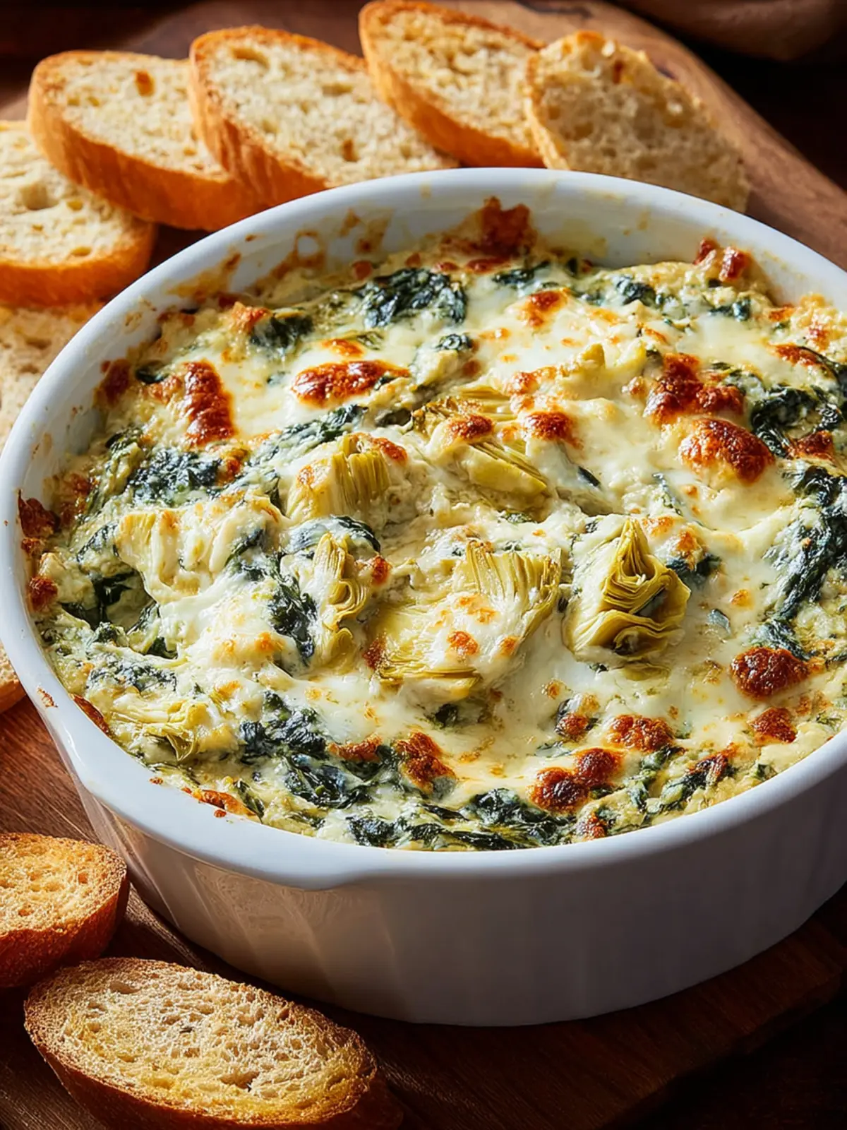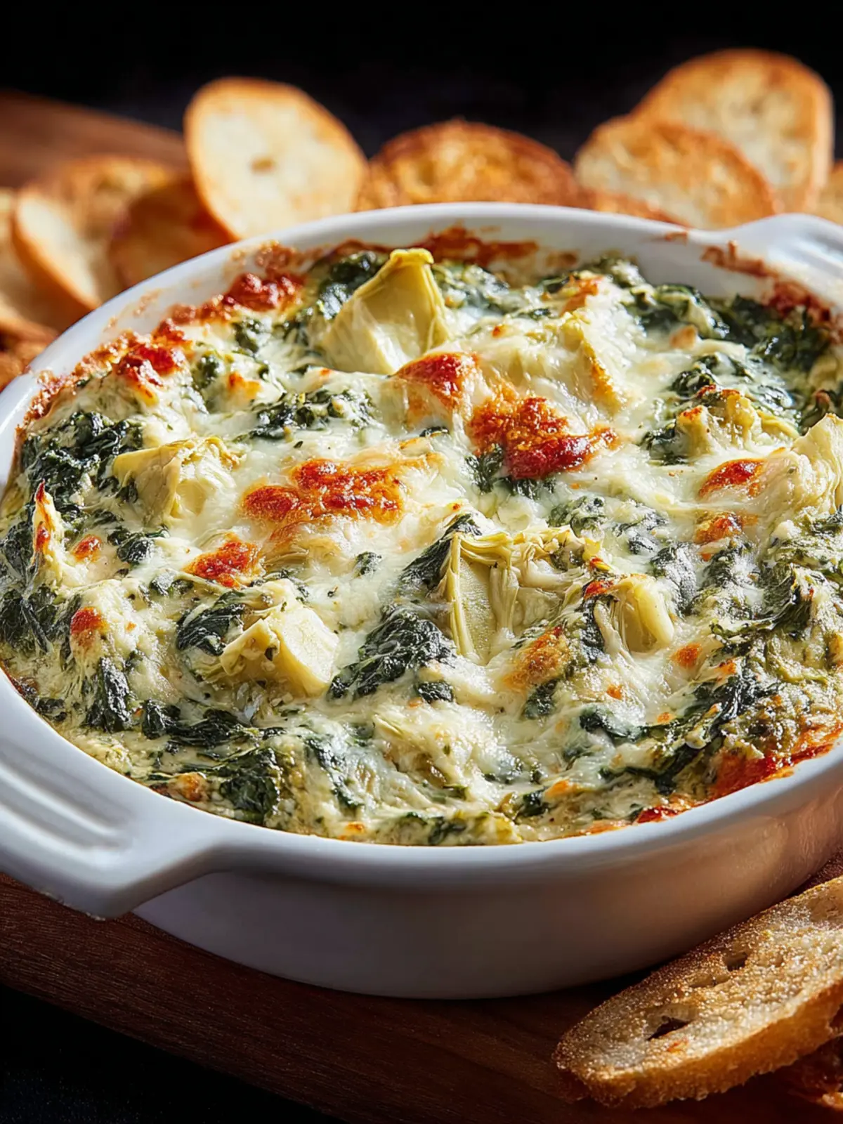 When it comes to dippers, the sky’s the limit! Here are some popular choices that pair wonderfully with spinach and artichoke dip: