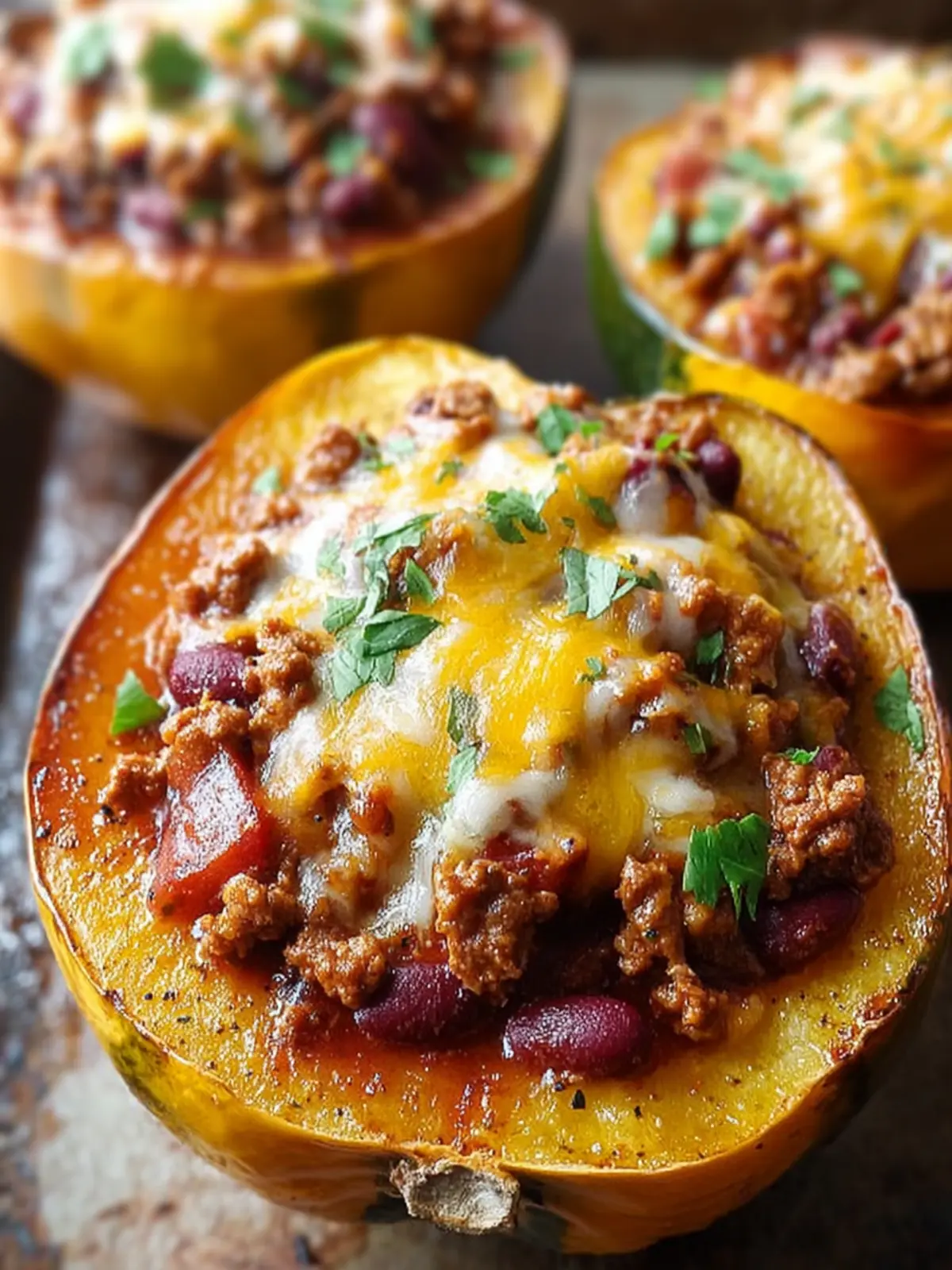 Acorn Squash: I choose acorn squash for its lovely sweet flavor and beautiful presentation. Their unique shape makes them perfect vessels for stuffing. When roasted, they caramelize, enhancing the natural sweetness that complements the savory chili filling.