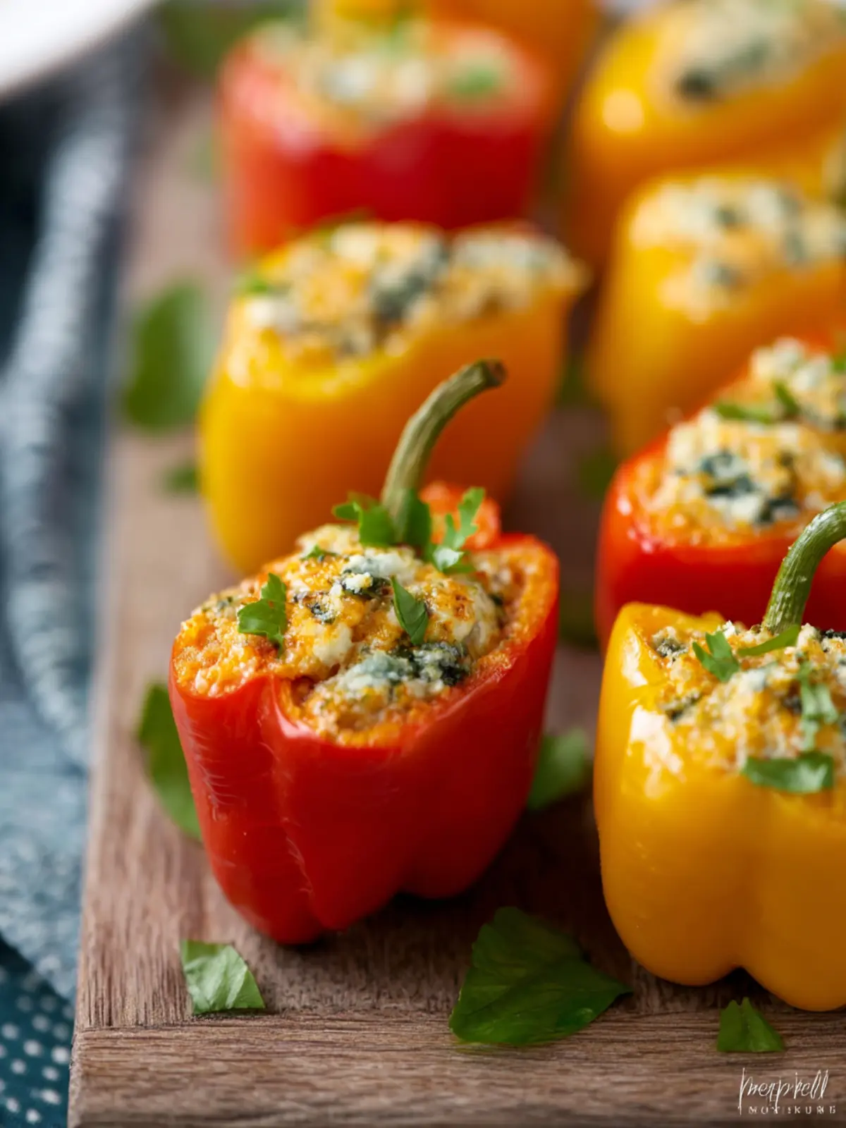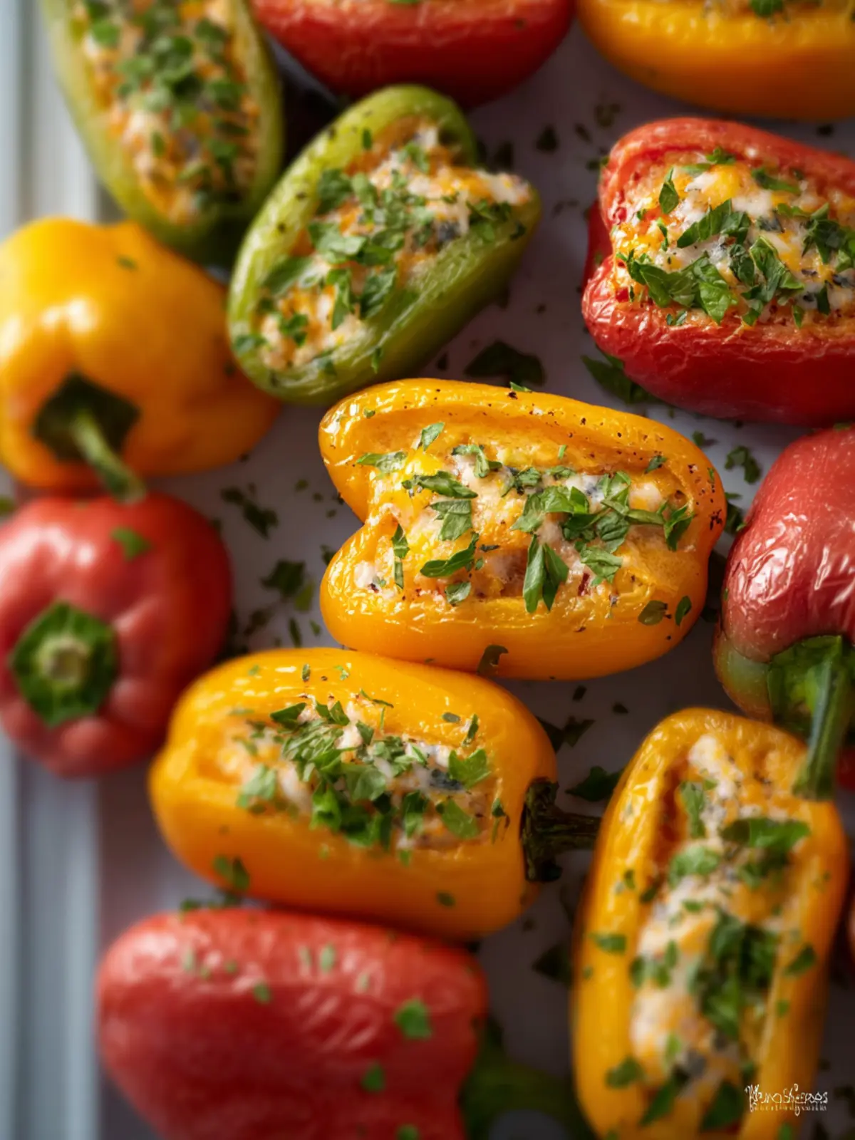 Garnish your stuffed mini peppers with freshly chopped herbs like parsley or cilantro before serving. This not only gives a fresh kick but also enhances the visual appeal of your dish.