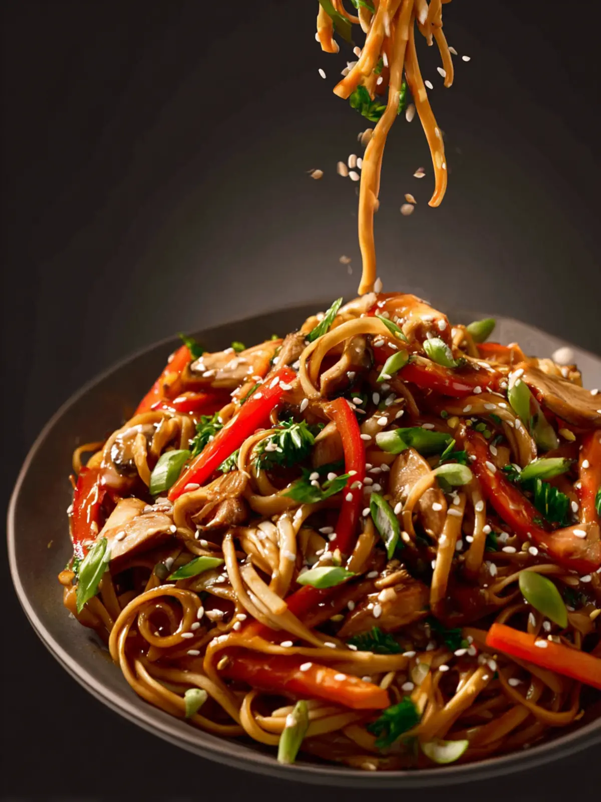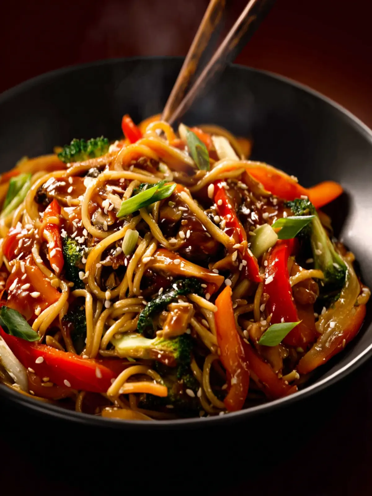 A delicious and easy stir-fry featuring noodles, fresh vegetables, and a savory teriyaki sauce.
