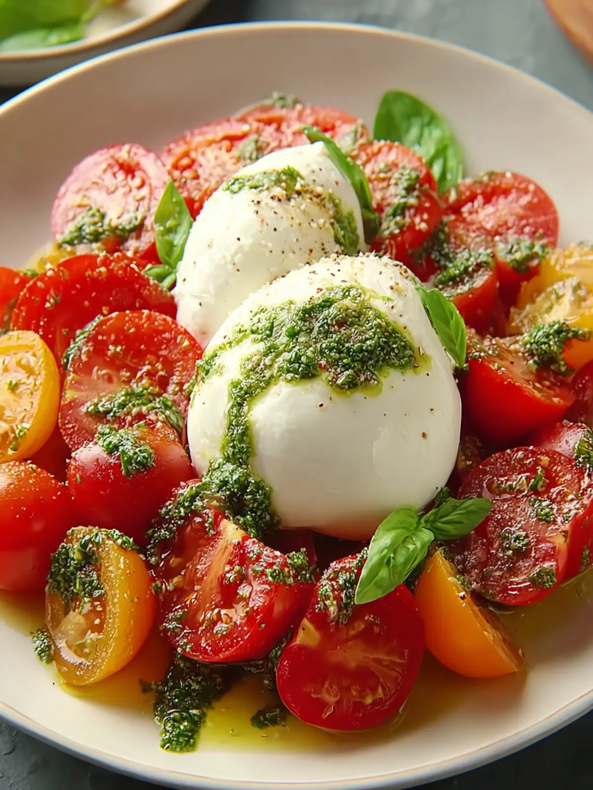 For an authentic Italian touch, incorporate fresh basil leaves and a drizzle of balsamic reduction. The aromatic basil pairs beautifully with the creamy burrata, while the reduction adds a rich sweetness that balances the acidity of ripe tomatoes.