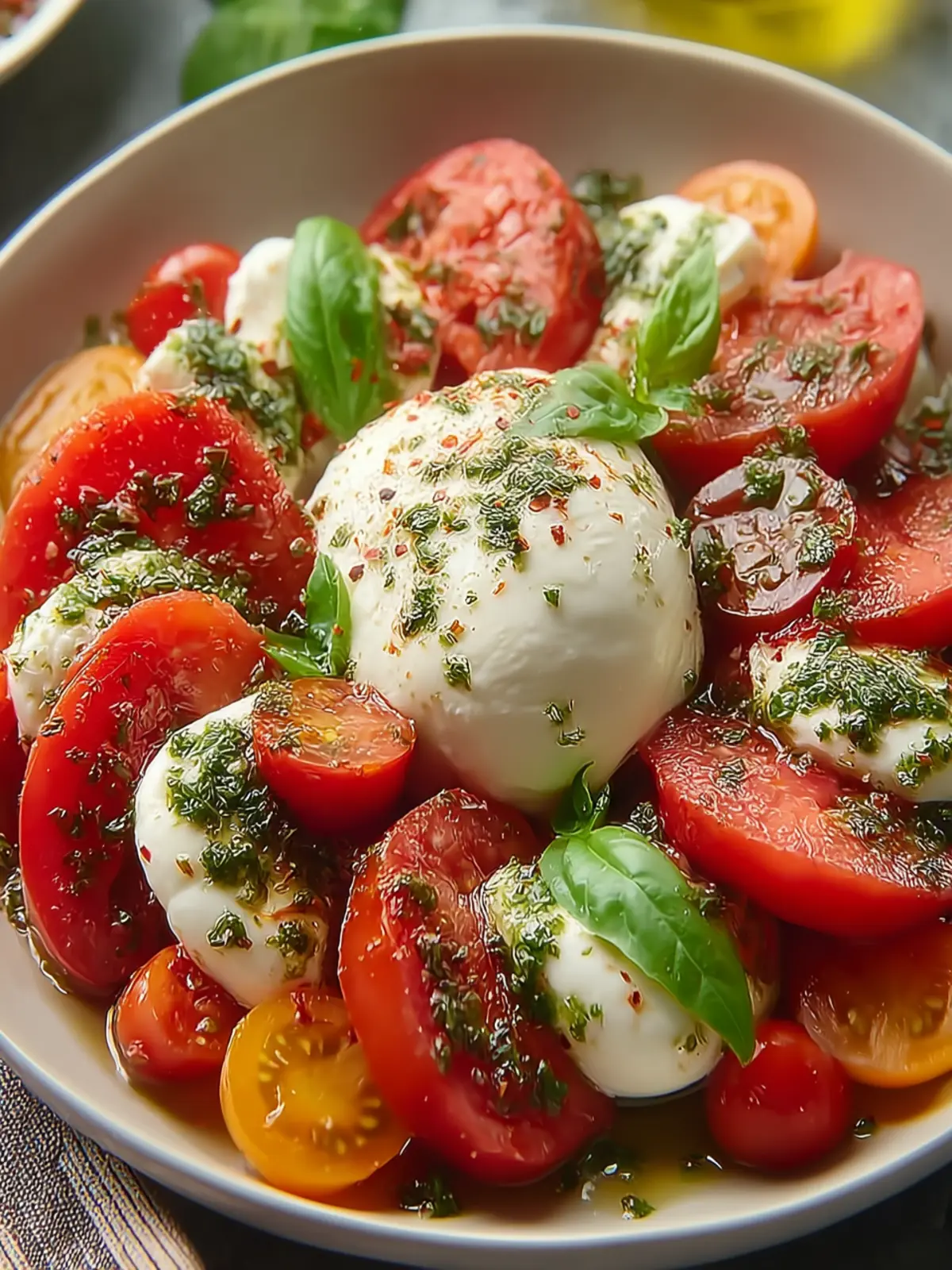 While basil is a classic choice to complement tomatoes and burrata, don’t hesitate to experiment with other herbs as well. Consider adding parsley or arugula for a peppery kick! A mix of herbs can elevate the flavor profile significantly.