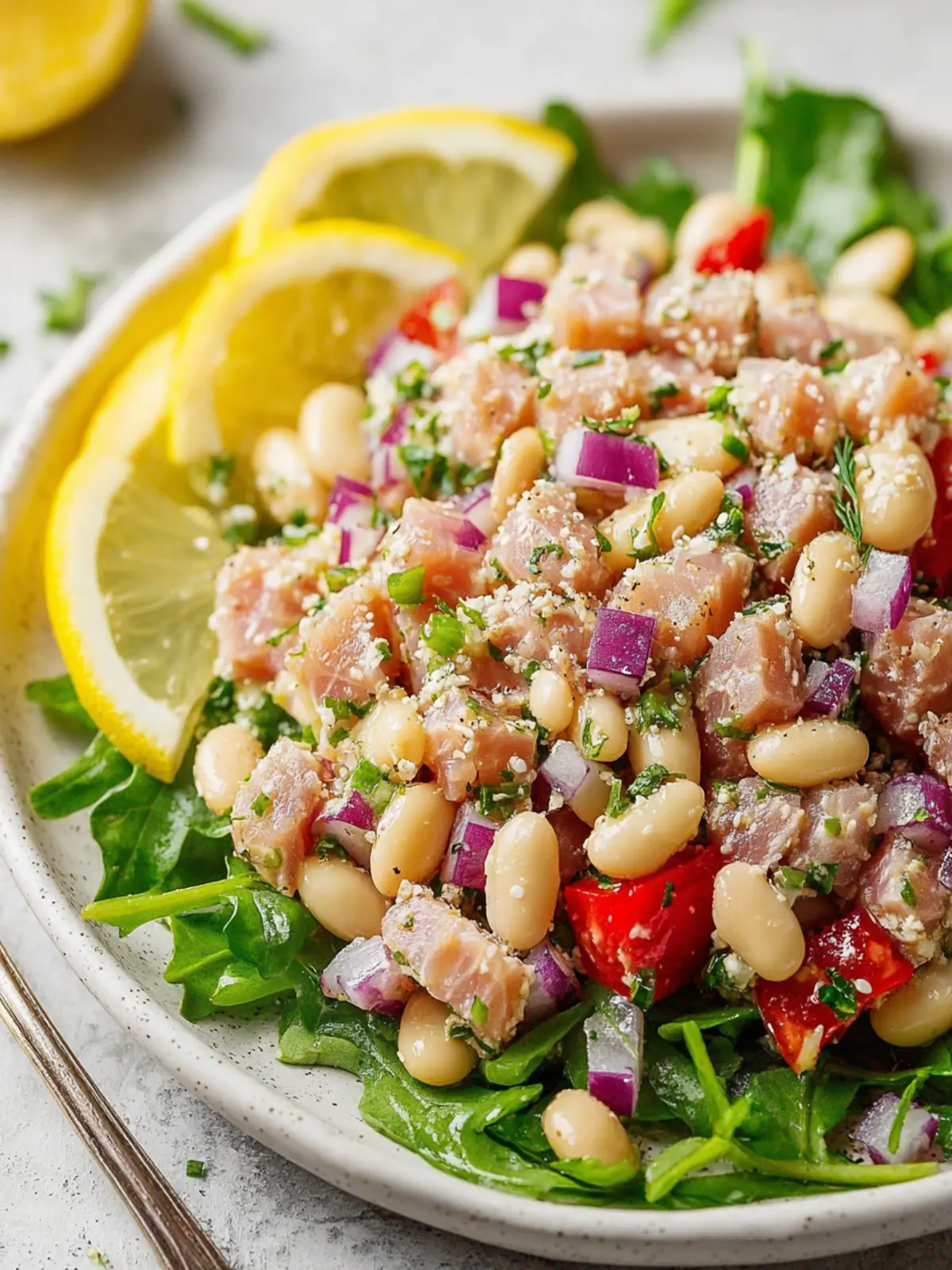 The tuna and white bean salad is not only delicious but also packed with health benefits. Tuna provides a generous dose of lean protein and Omega-3 fatty acids, which are essential for heart health. Meanwhile, white beans are rich in fiber, keeping you feeling full and satisfied longer. Adding fresh ingredients like cherry tomatoes and parsley elevates the nutritional profile even more, helping you get your daily dose of vitamins.